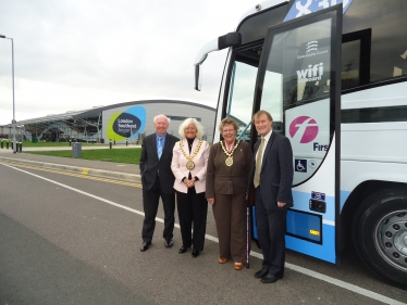 X30 Aircoach Lifts Off 16th October 2012 The new X30 Aircoach took off on Monday, with a helping hand from David Amess MP, Sally Carr, Mayor of Southend, Councillor Derek Jarvis, and Joan Mockford... Local News